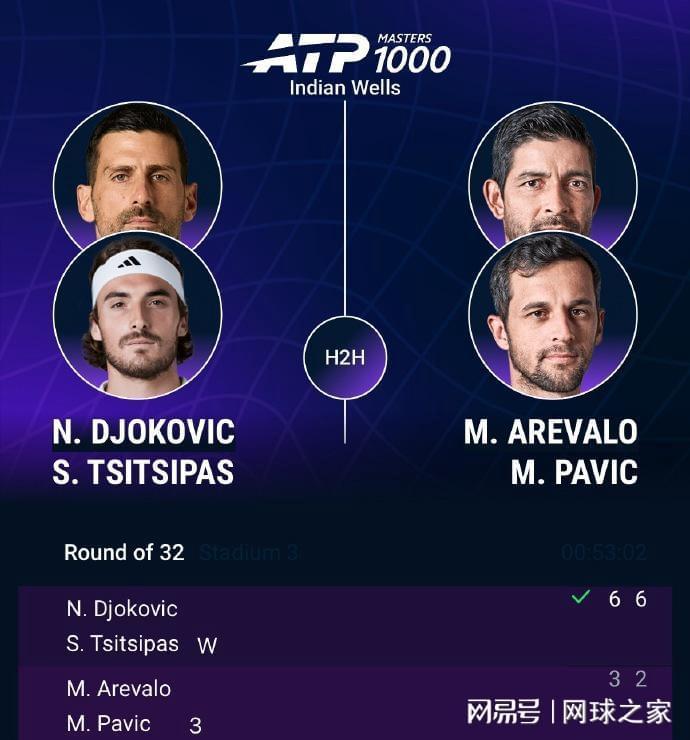 双打赛场:在首轮一场对决中,持外卡出战的德约科维奇/西西帕斯以6-3 6-2击败3号种子阿雷瓦洛/帕维奇,顺利晋级,德约科维奇因此收获了一日双胜。第二轮,他们将对阵表兄弟组合林德克内西/瓦舍罗。而辛纳/奥佩尔卡则以4-6 4-6不敌头号种子格拉诺勒斯/泽巴罗斯,止步首轮。